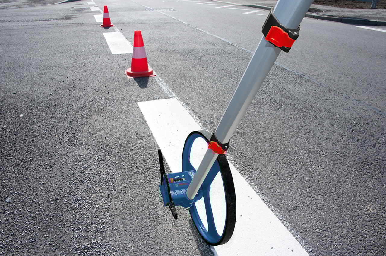 Målehjulet har et teleskopskaft, som du kan indstille til den højde, som passer dig bedst. Det trykstøbte aluminiumshjul har en kraftig gummikappe, som du kan bruge på enhver overflade!