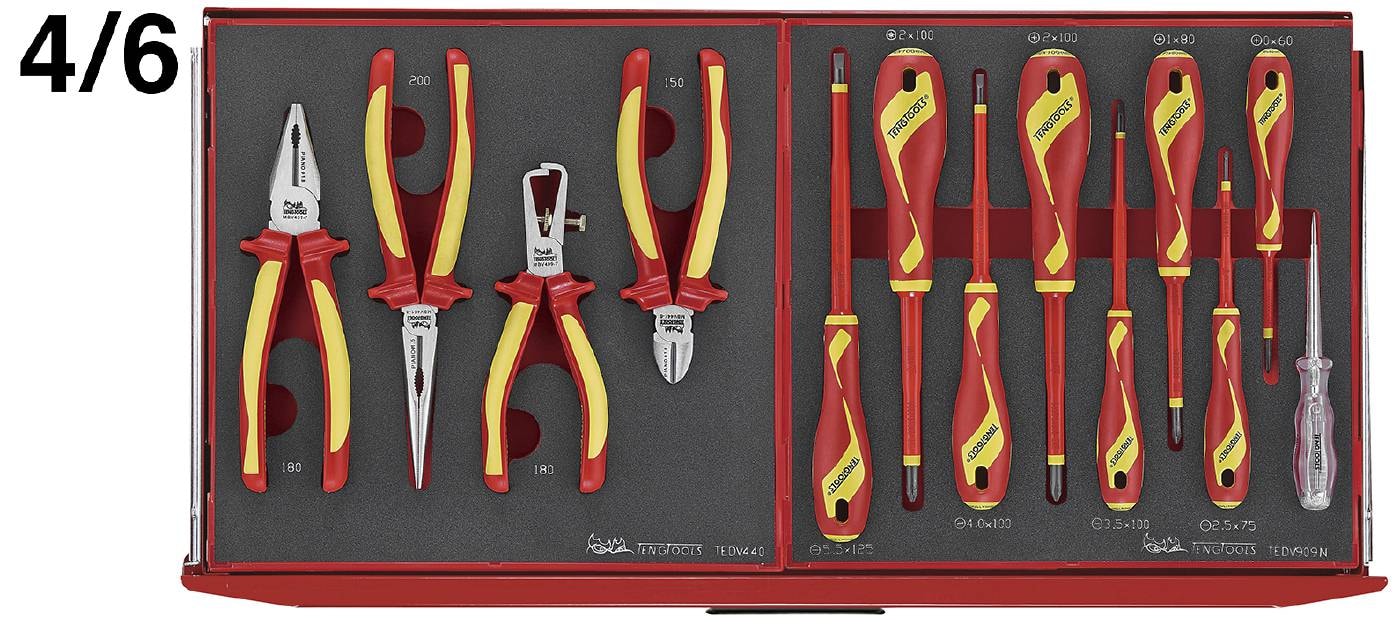 Teng Tools TCEMM249N er et omfattende værktøjssæt indeholdende 249 dele. Værktøjet er fordelt i bokse med EVA-skum i tre forskelligt farvede lag som holder værktøjet på plads og gør det let at finde det værktøj du skal bruge samt at se om der mangler noget.