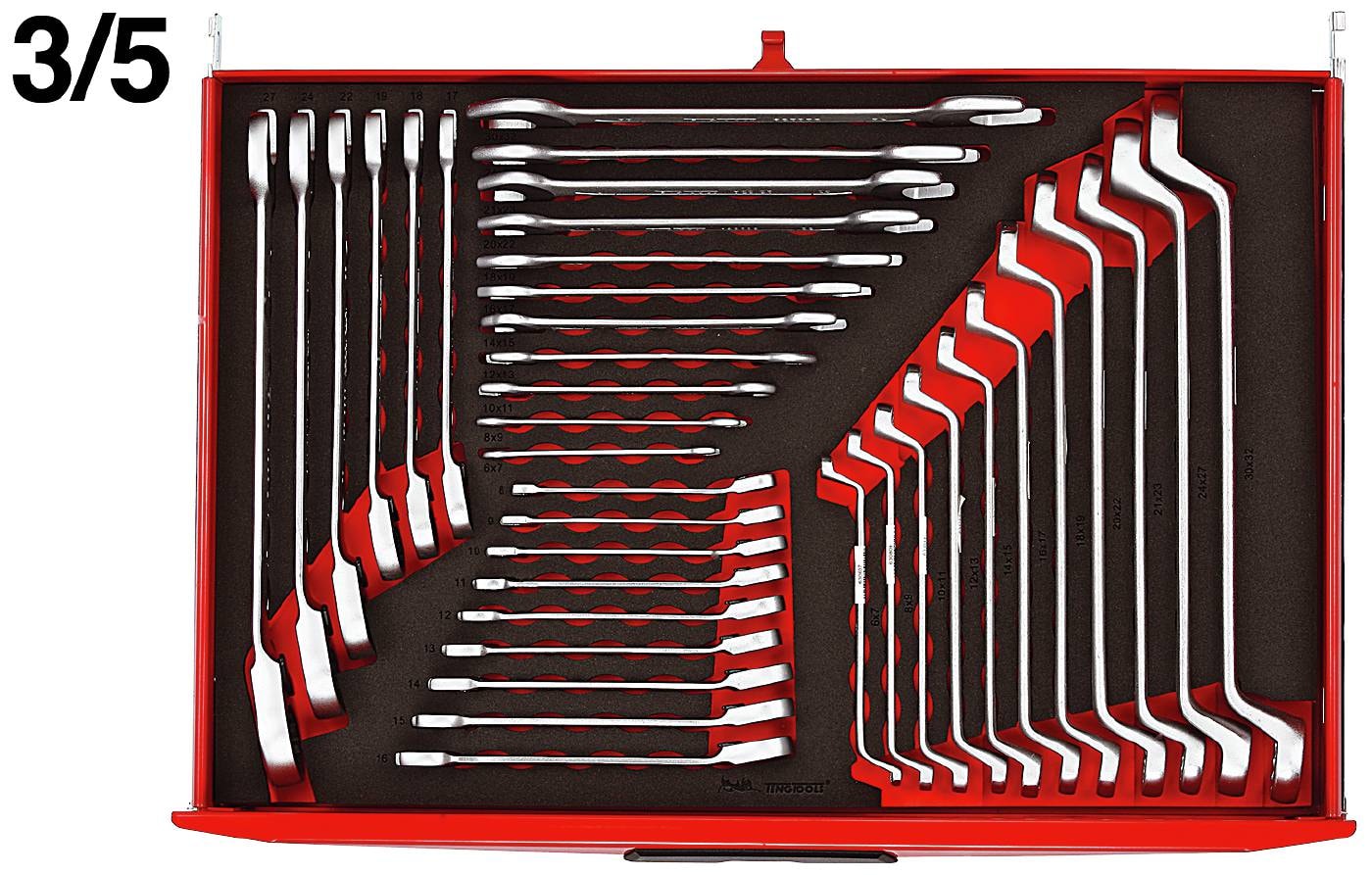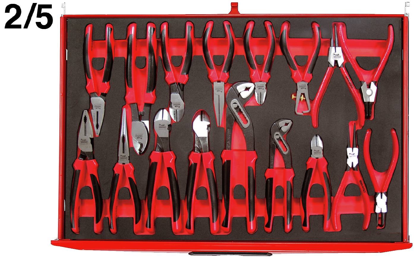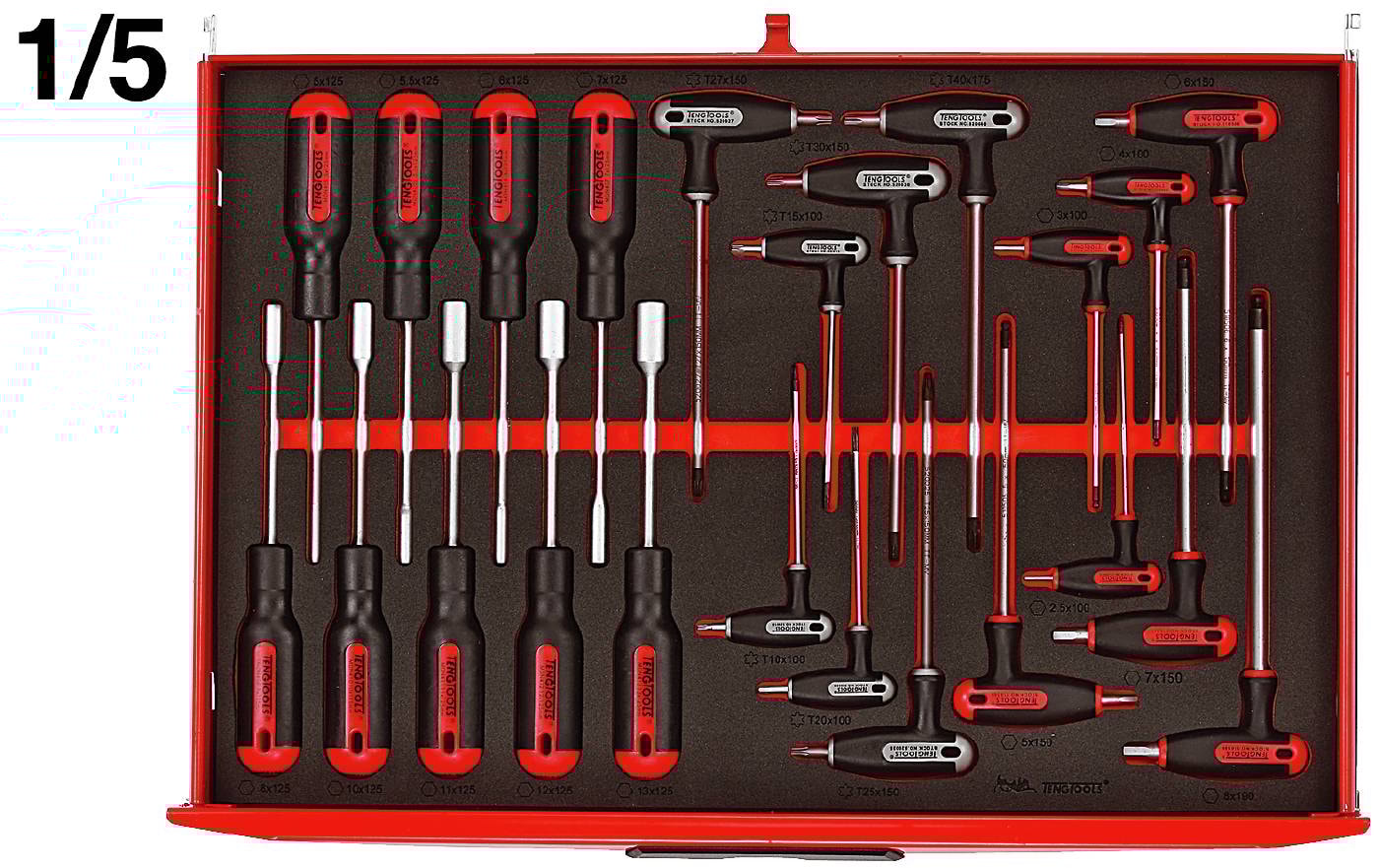 Komplet værktøjssæt med 530 dele som er fordelt i Teng Tools’ opbevaringssystem udfræset i tre forskelligt farvede lag skumplast. Leveres i montørvogn TCW806N1 og værktøjsboks TC805NFX. Sæt nr. 0 er anbragt i værktøjsboksens topbakke.