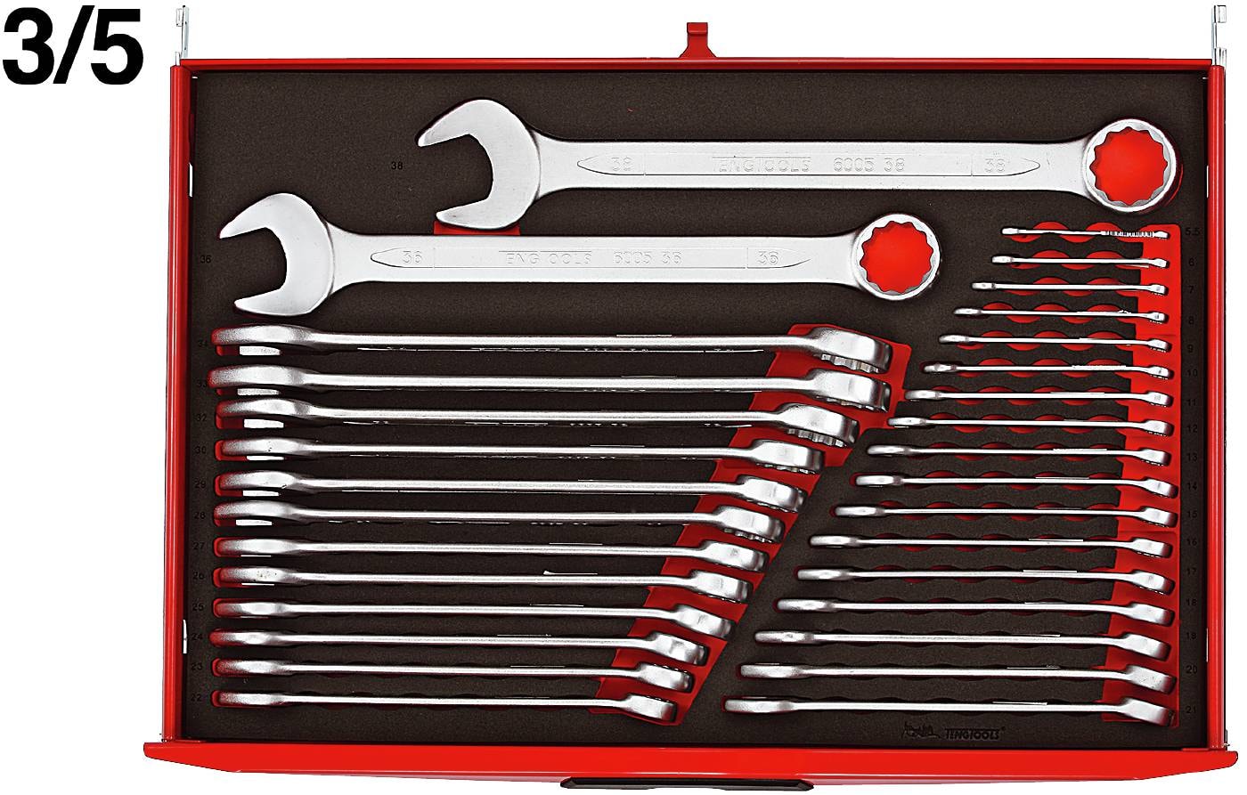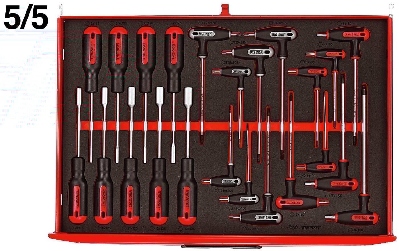 Værktøjssæt med 280 dele som er fordelt i Teng Tools opbevaringssystem i tofarvet skumplast med udfræsninger. Leveres i værktøjskasse TC805NFX.