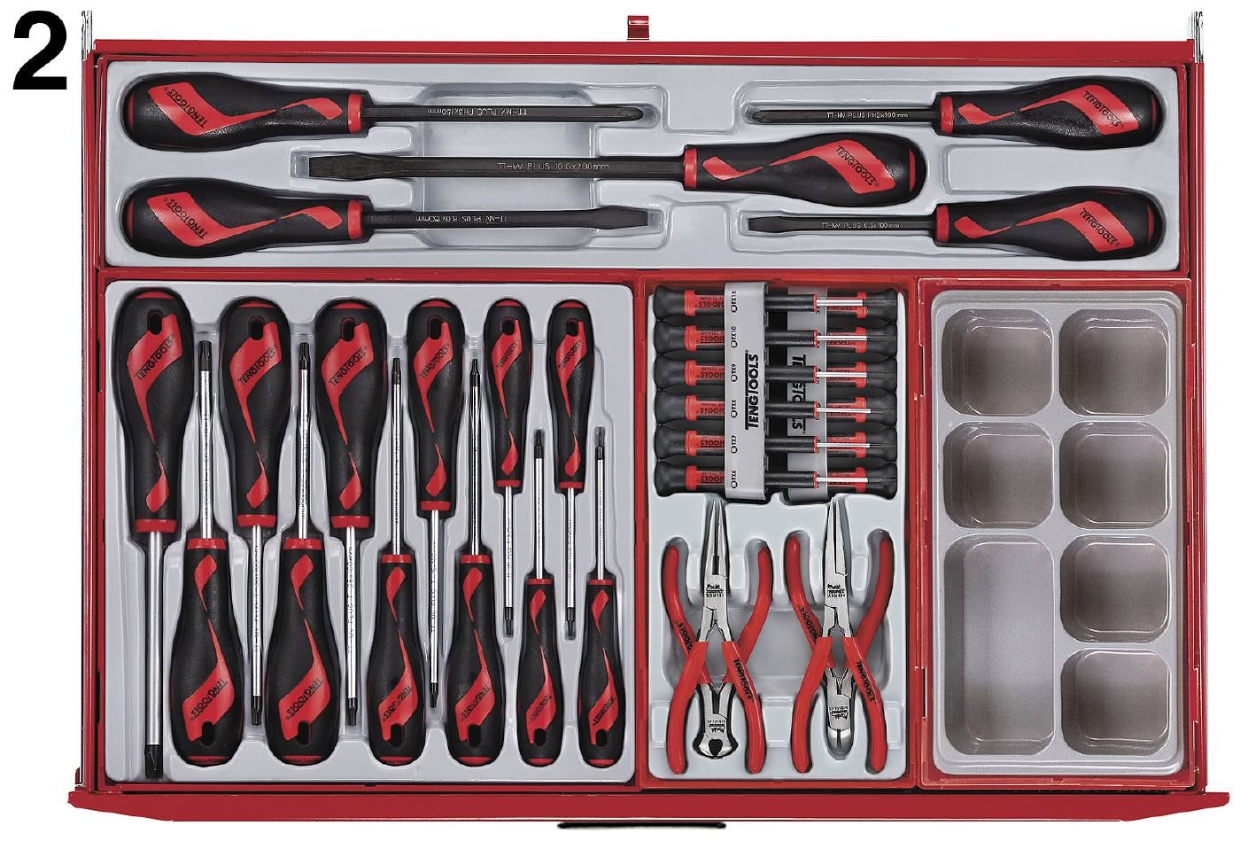 Det ultimative værktøjssæt med 1185 dele placeret i værktøjsvogn TCW809N med 9 udtræksskuffer, samt topboks TC810N med 10 udtræksskuffer.