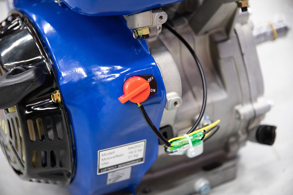 Letstartet og pålidelig benzinmotor på 16 hk med manuel håndstart.
