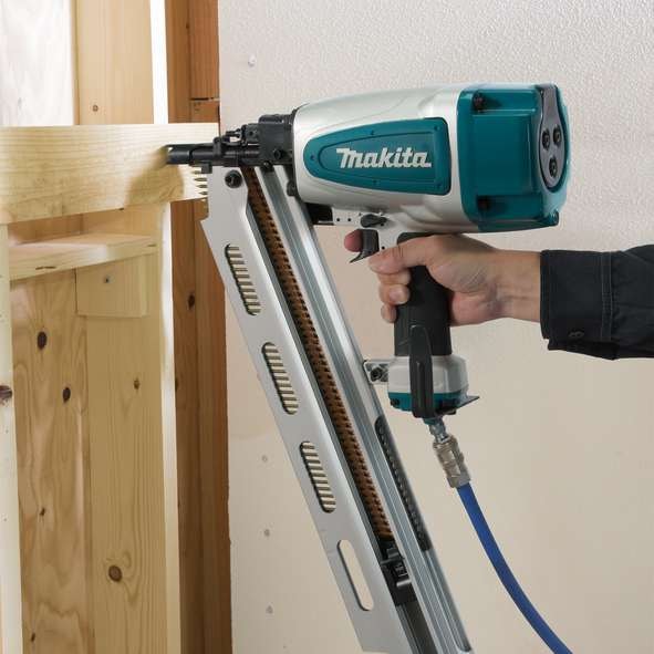 Spikpistol för rakbandad spik, 21° med D-huvud. Rakbandad spikpistol med djupjustering, tilluftsfilter och gummihandtag för bästa grepp. Spiklängd mellan 5090 mm. Går att välja mellan singel- eller serieskott.