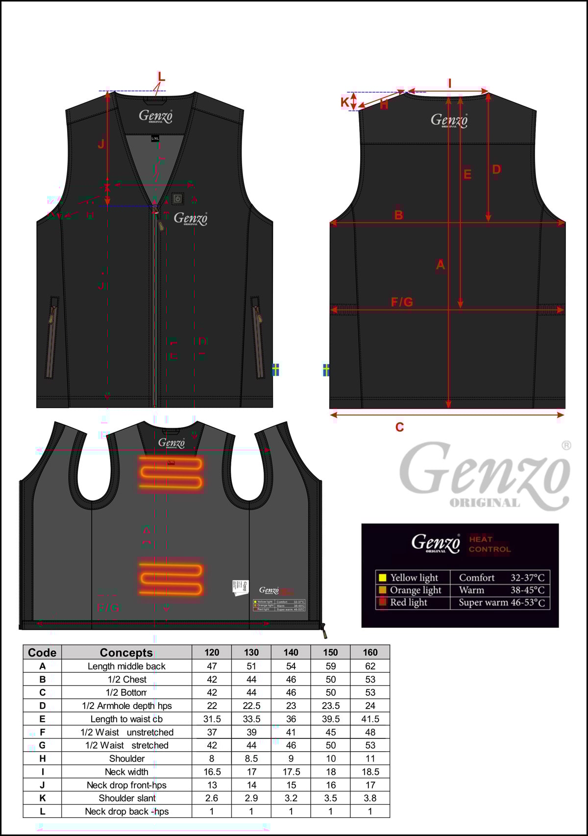 Batteridrevet varmevest med behagelig stretch nederst på ryggen. Let polstring med indbyggede varmespiraler over skuldrene og nederst på ryggen. To sidelommer. Strechen nederst på ryggen giver en perfekt pasform og gør, at varmeelementerne kommer så tæt på kroppen som muligt. Vesten har et tyndt, meget isolerende for med refleksion, der maksimerer varmeelementernes evne til at lede varme.